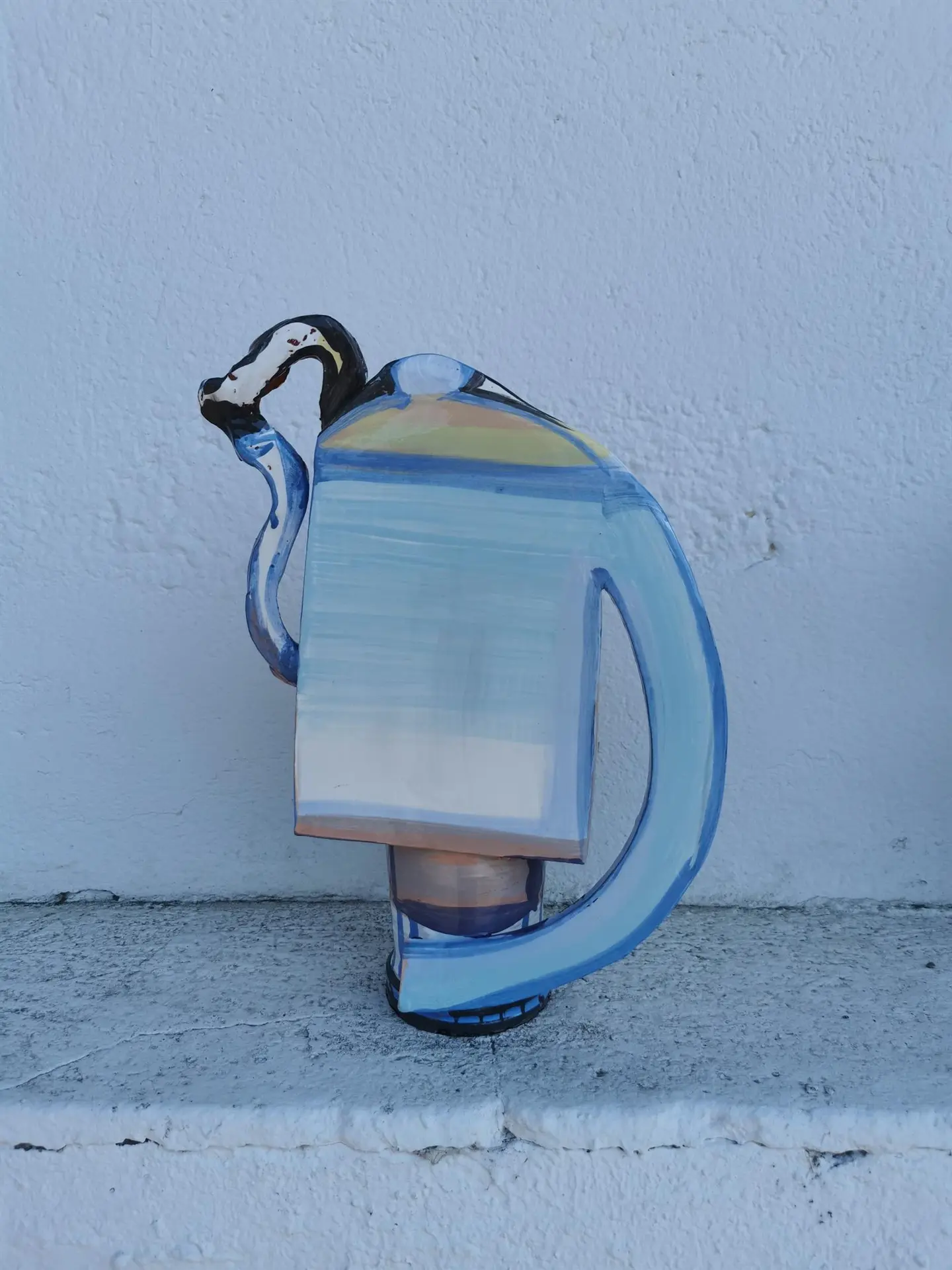 À Strasbourg, François Bauer se définit volontiers comme potier. Il façonne des objets utilitaires, oui, mais il peint aussi, et se fait même architecte lorsqu’il construit, déconstruit, organise des plans, juxtapose des couleurs. Entre surface et volume, il cherche l’équilibre là où on ne l’attend pas, ose les combinaisons surprenantes, pousse la terre vers des agencements audacieux. Ses pièces restent praticables tout en se laissant détourner, supports d’une peinture nourrie de souvenirs, d’héritages familiaux, et d’un goût assumé pour la peinture fauve, les couleurs vives et les fleurs.