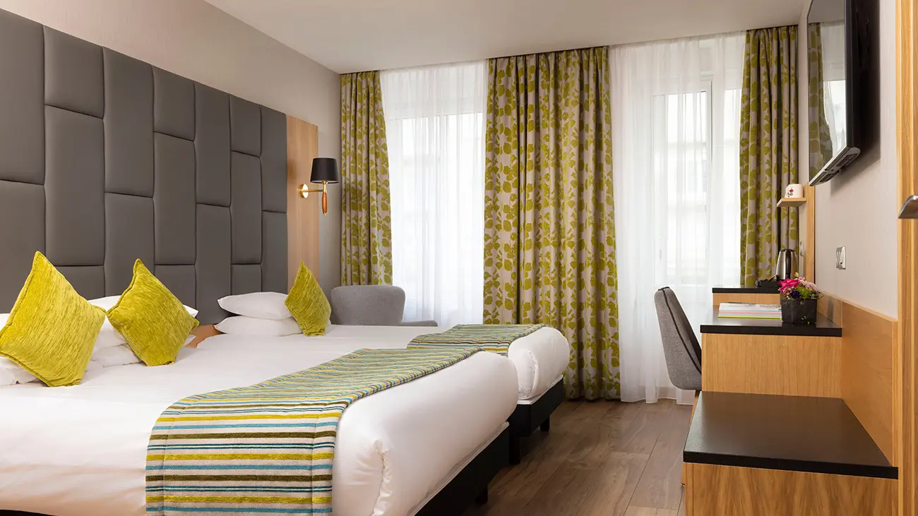 Das Hotel Bristol in idealer Lage in der Innenstadt von Mulhouse, nur ein Katzensprung vom berühmten Wolkenkratzer "Tour de l'Europe" (Europaturm) und vom Automobilmuseum entfernt, empfängt Sie in einem warmherzigen und höflichen Ambiente. Die Zimmer und Suiten sind ein wahrer Hafen der Ruhe. Mit ihrer komfortablen, eleganten und guten Ausstattung garantieren sie Ihnen einen angenehmen Aufenthalt. Jeden Morgen wird ein Frühstücksbuffet serviert. Für Tagungen und Seminare stellt Ihnen das Hotel 6 Säle mit der notwendigen technischen Ausstattung für bis zu 130 Personen zur Verfügung. Sie können das Hotel leicht erreichen: Es ist nur drei Tram-Haltestellen vom TGV-Bahnhof entfernt.