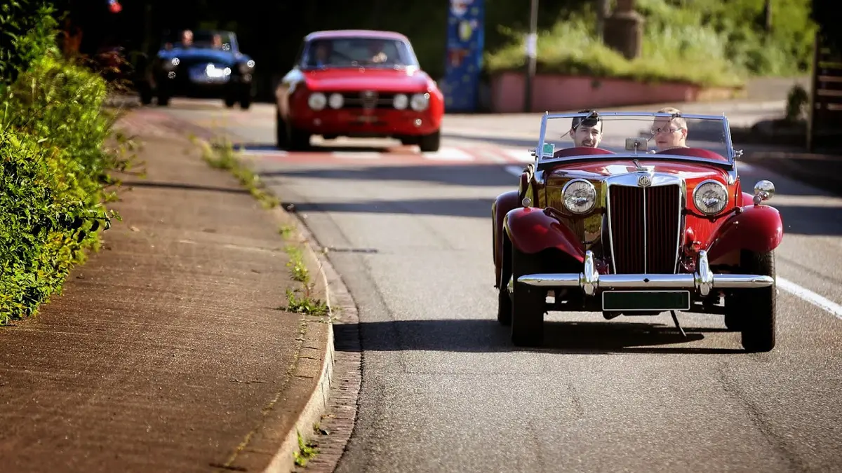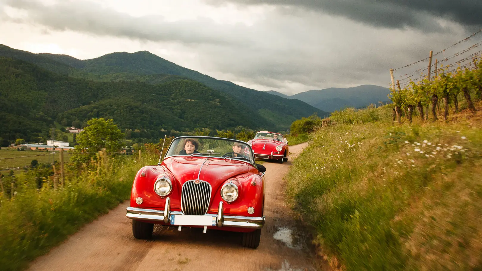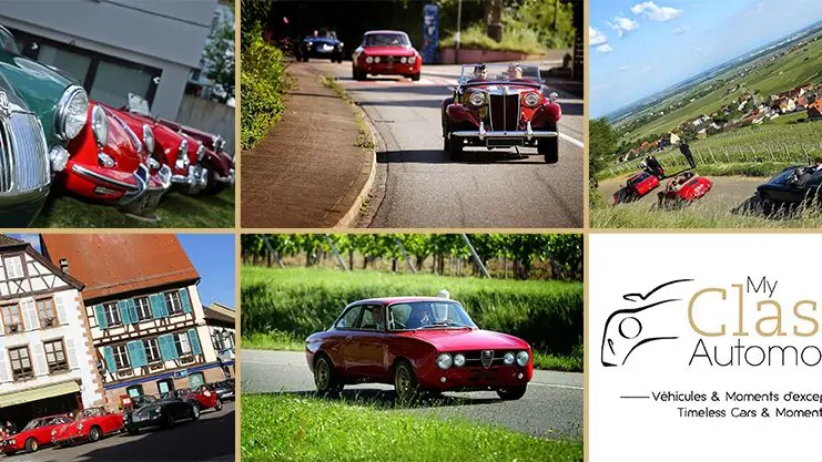Erfüllen Sie Ihren Traum in einem Oldtimer (Ferrari, Lamborghini , Jaguar, Bentley, MG, Austin-Healey, Porsche ...), um die elsässische Weinstrasse zu entdecken.