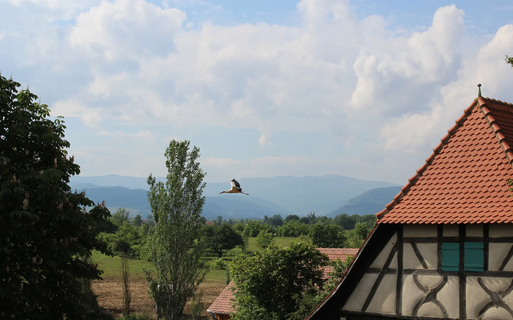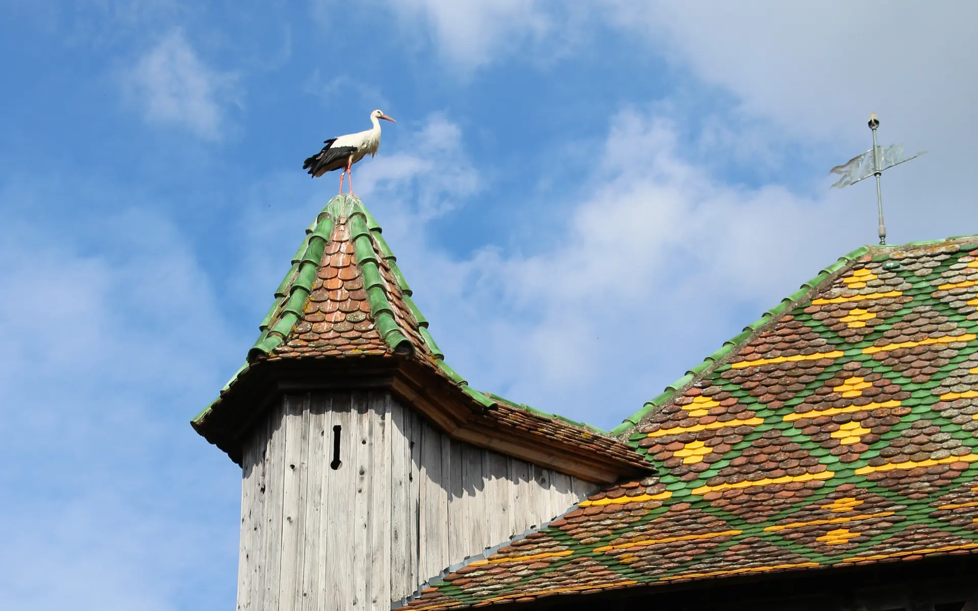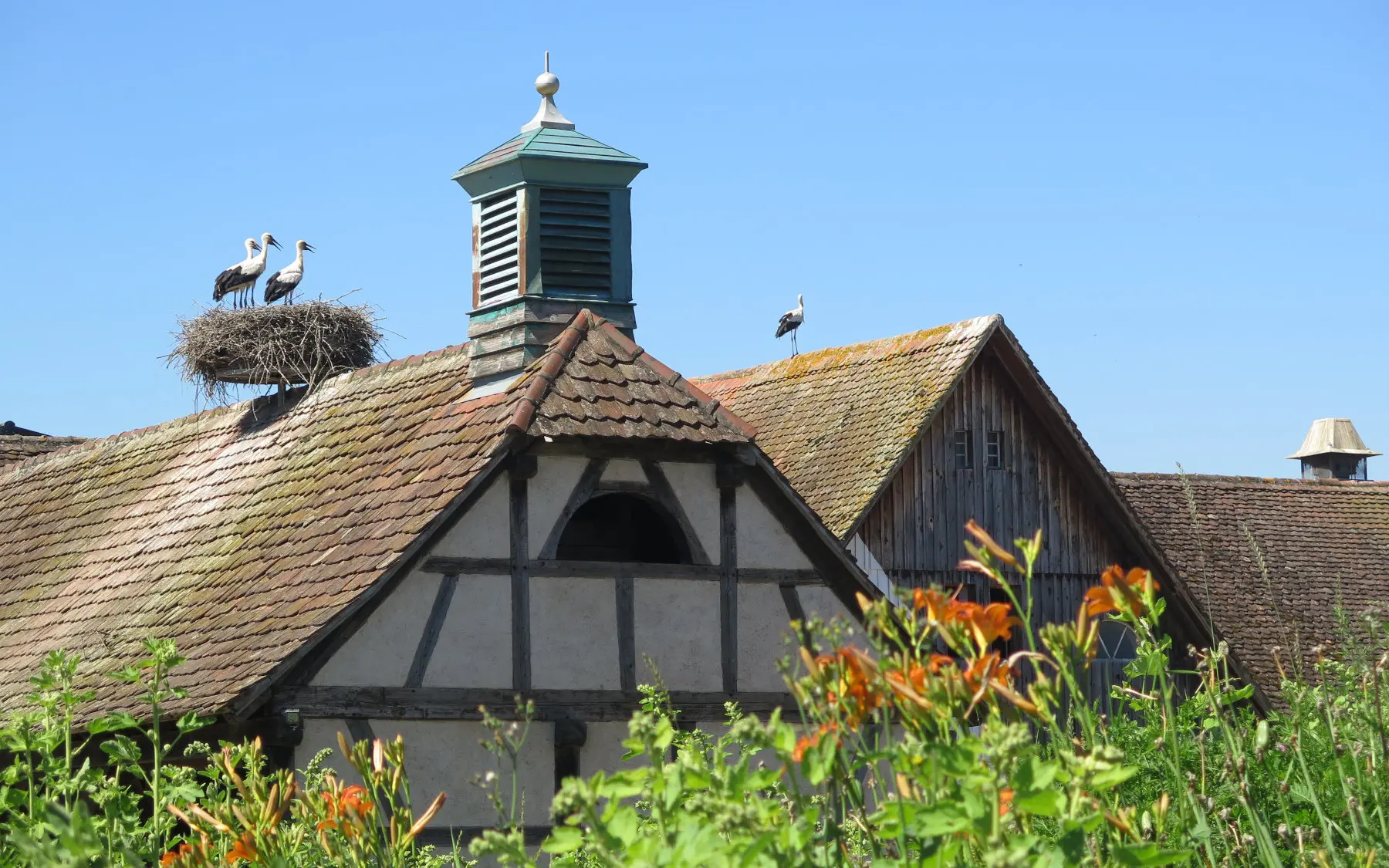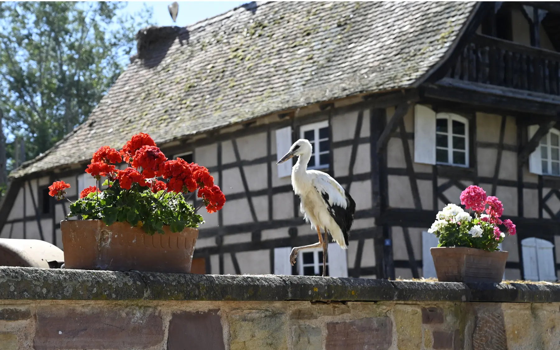 Der Weißstorch, das Wahrzeichen des Elsass, erlebte in den 1970er Jahren einen dramatischen Rückgang und stand kurz vor dem Aussterben. Dank des Engagements und der harten Arbeit von Enthusiasten feierte er ein Comeback und bevölkert heute wieder den Himmel über dem Elsass.>.