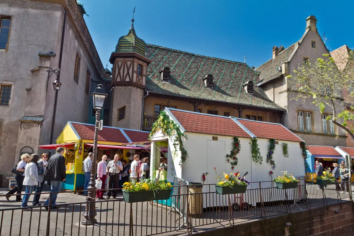 C'est autour de l'imposant Koïfhus datant du Moyen-Age, et dans un décor bucolique planté en plein centre historique, que les exposants, installés dans leurs jolies maisonnettes colorées, vous proposeront leurs produits.