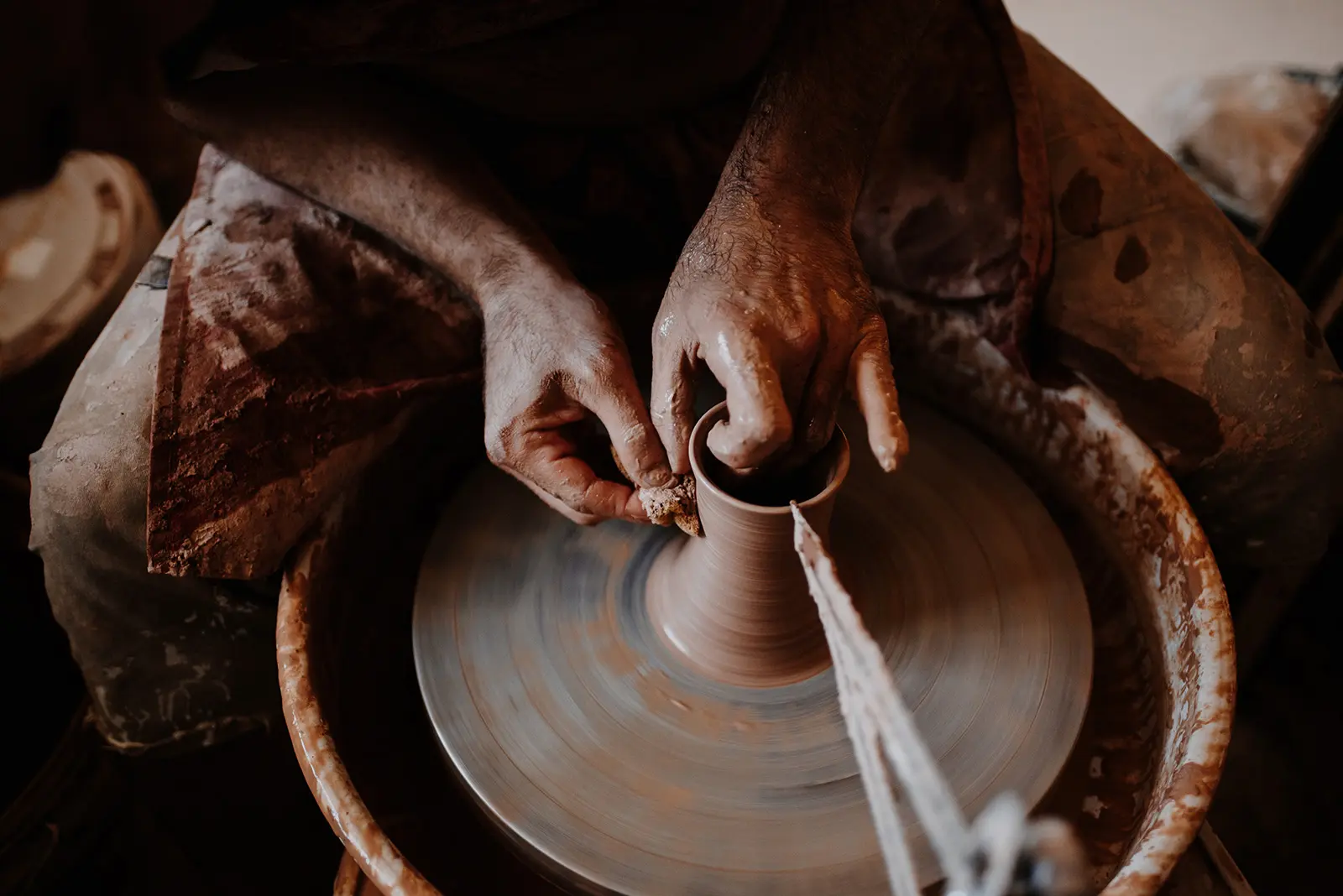 Nach einer Vorstellung des Materials und der einzunehmenden Haltung erkunden Sie Ihre eigenen Empfindungen und nehmen Kontakt mit dem Ton auf, wobei Sie von Giom, einem Töpfer und Keramiker, beraten und begleitet werden. Dabei wird es vor allem darum gehen, sich seiner Empfindungen bewusst zu werden, aber auch um den Einfluss des eigenen Körpers auf die Art und Weise, wie der Kontakt mit dem Ton zustande kommt. Nachdem Sie Dutzende von hypnotisierenden Videos in den sozialen Netzwerken gesehen haben, träumen Sie davon, das Drehen selbst auszuprobieren? Dann ist jetzt der richtige Zeitpunkt, um das Experiment zu wagen, in einer kleinen Gruppe und mit einer wohlwollenden Begleitung, die sich die Zeit nimmt, Ihnen die verschiedenen Schritte für ein erfolgreiches Drehen eines Keramikstücks zu erklären.