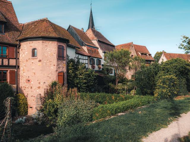 Come and stroll through the alleys to admire the colorful houses and discover its castle around which the village was built in concentric circles.