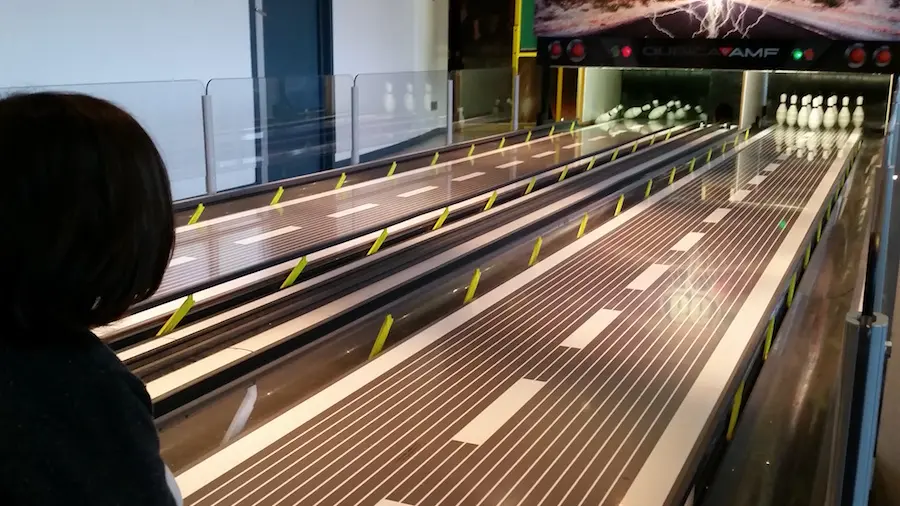 Only ultra-violet lighting and the fluorescent colors of the balls, tracks and obstacles help players find their way around.