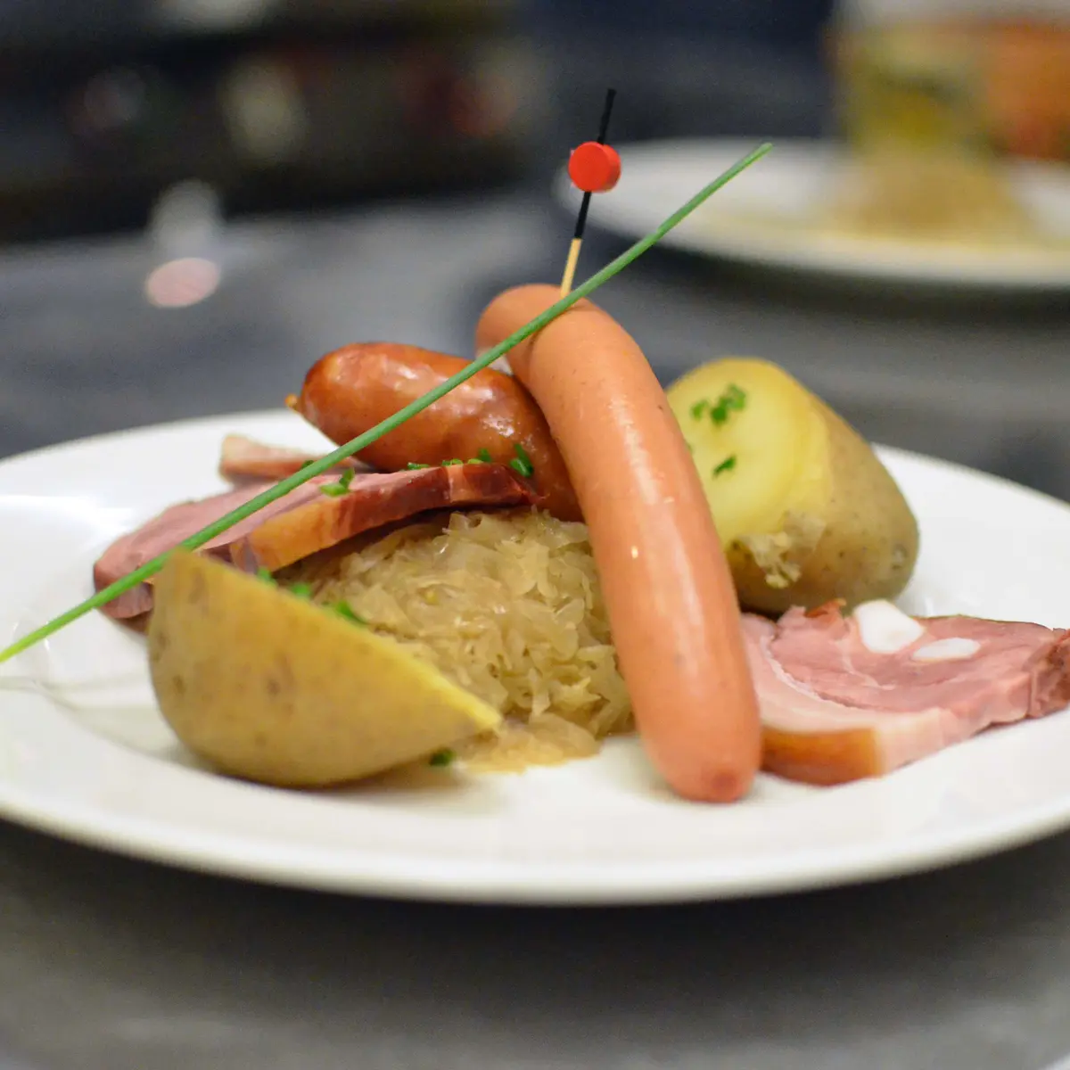 Between the Ecomusée d'Alsace and the Parc du Petit Prince, La Taverne opens its doors to you. This typical Alsatian restaurant offers a warm welcome and local specialities. Well-stocked plates and homemade dishes are the hallmarks of our cuisine. Whether with family, friends or for a business lunch, there's something for everyone here, with Alsatian flavors appreciated by tourists and regulars alike.