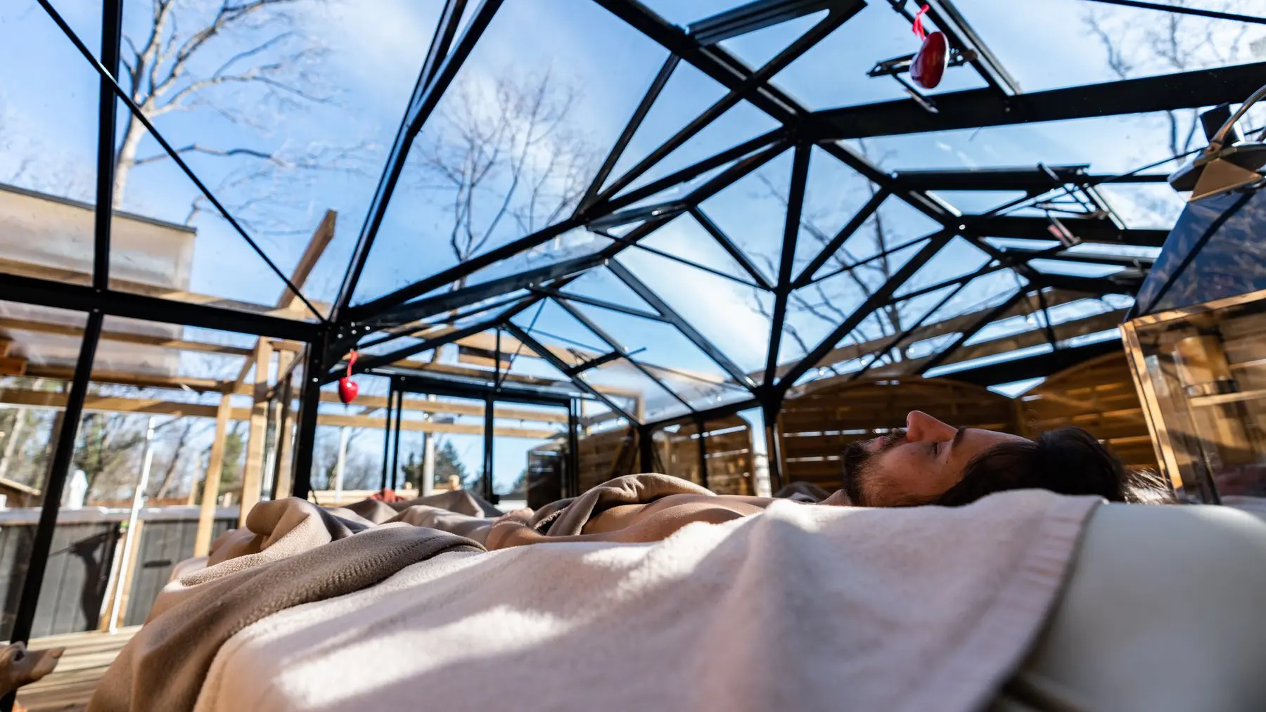 Identical to the Nordic and Scandinavian countries, our Le Spa Nordique Wellness Institute introduces you to the concept of thermorelaxation. This concept consists of alternating hot, cold and rest. Discover this unique experience on a space of 3320 m2, in the heart of the forest: saunas, hammams, kota restaurant, a balneo indoor pool, fitness tent, Nordic cave and modelling cave... travel in the universe of Scandinavian countries, land of ice and fire.