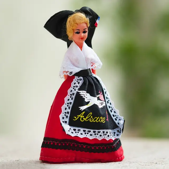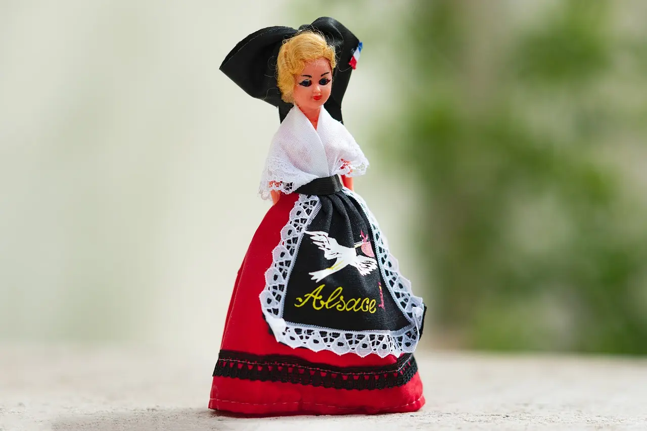 Inspired by traditional Alsatian costume, create your own figurine using contemporary fabric. You can then make a painting to hang this unique piece in your home.