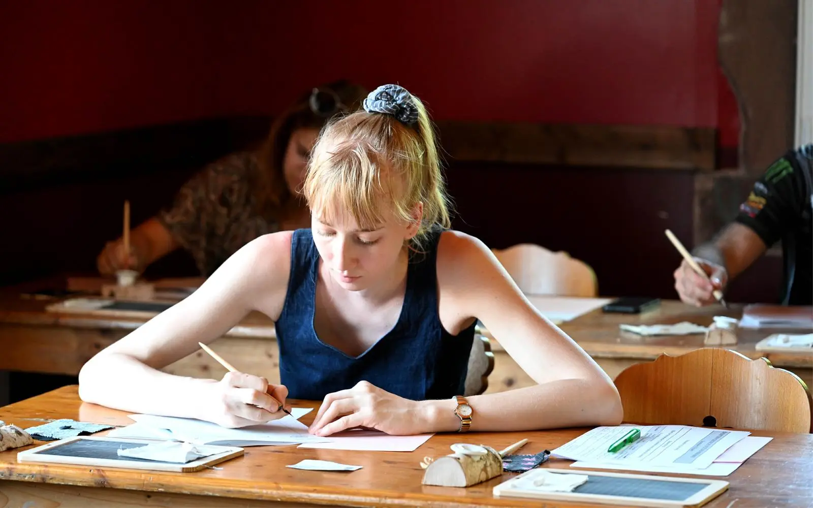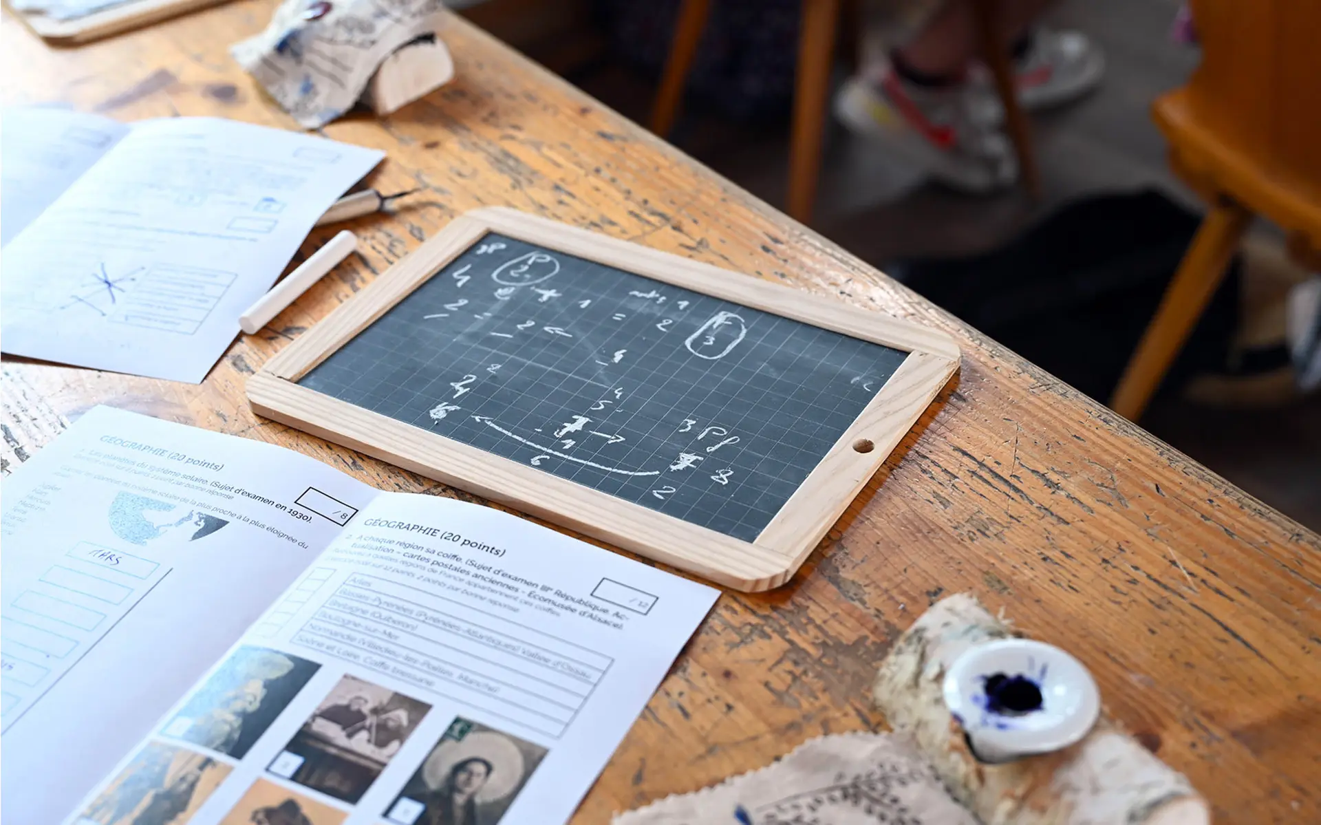 Sit at your wooden desk, take up your pen and tackle dictation, arithmetic, history and science tests.