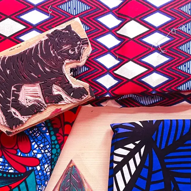 Estelle Specklin, connue sous le nom de Poupet-Pounket, créatrice de mode, vous invite à créer votre propre tampon en linogravure, inspiré des motifs hauts en couleur de l’exposition « Wax ! ». Munis de gouges, de gommes à graver et de toute votre créativité, vous réaliserez un tampon unique que vous pourrez ensuite utiliser sur du tissu ou du papier. Pendant l’atelier, vous aurez aussi l’occasion de le tester en personnalisant un support de votre choix : tote-bag, t-shirt, bandana… à vous de décider !