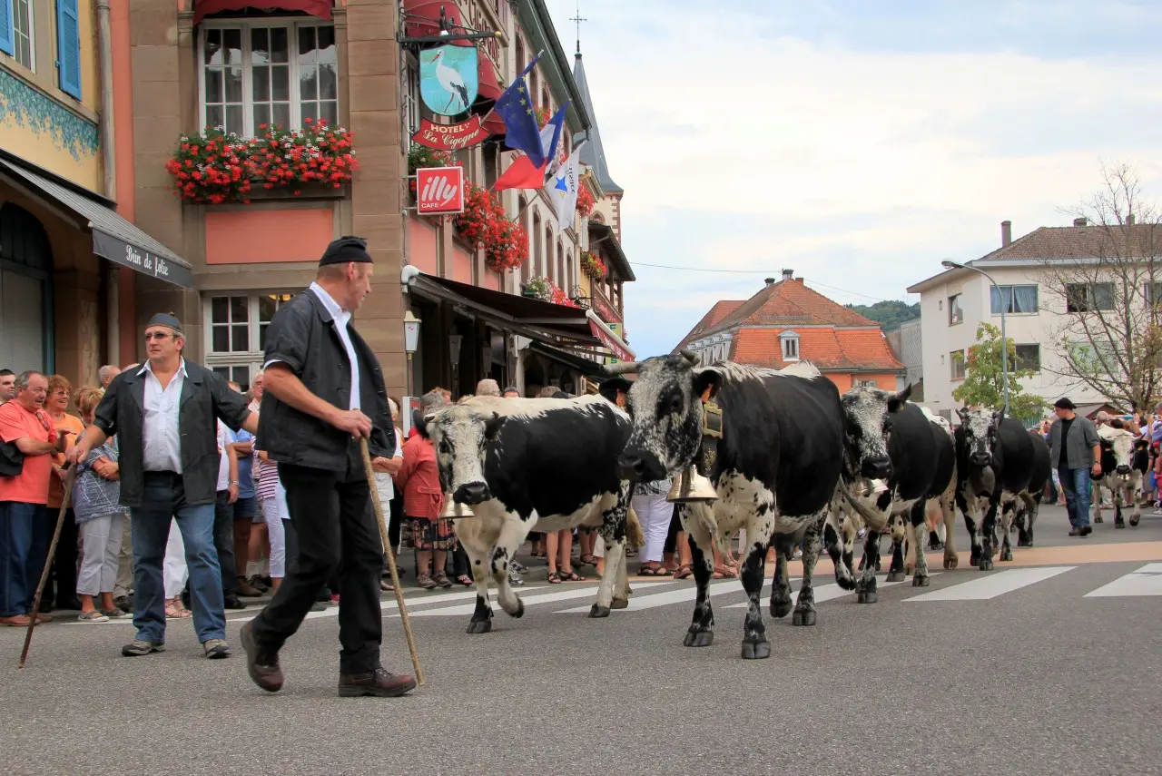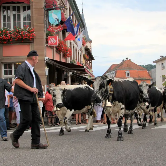 Venez découvrir le folklore et les traditions marcaires, à l'occasion de la fête de la Transhumance qui célèbre le retour des vaches vosgiennes dans la Vallée à Munster.