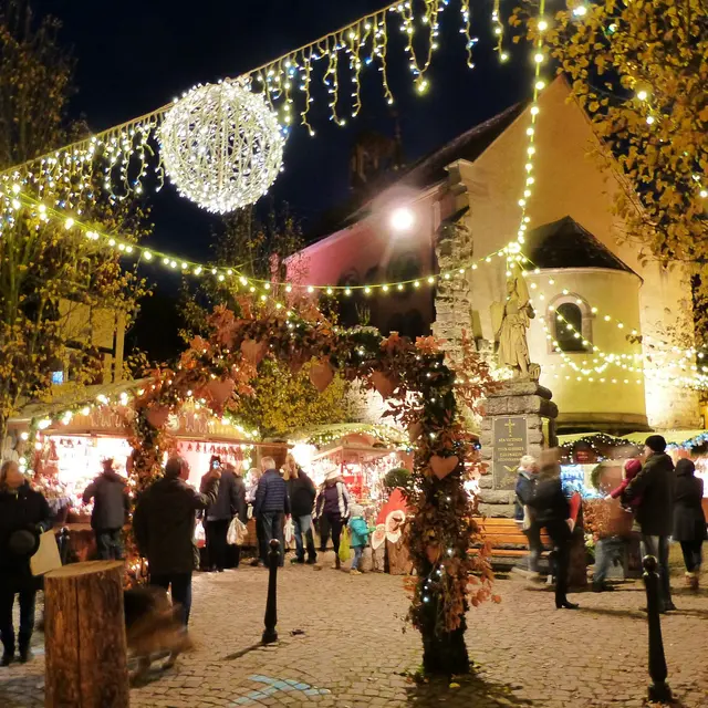Marché de Noël pittoresque et intimiste abordant les coutumes et traditions alsaciennes, il a obtenu le label "Villes et Villages de Noël" récompensant l'authenticité et la richesse de notre patrimoine. A Eguisheim, la priorité est accordée à une trentaine d'artisans et créateurs qui rivalisent d'étals alléchants et de maisonnettes scintillantes. Tous les jours, animations musicales en déambulation dans le centre-ville et dans les remparts. Eguisheim, l'écrin idéal pour partager un moment de rêve et découvrir la magie de Noël en Alsace !