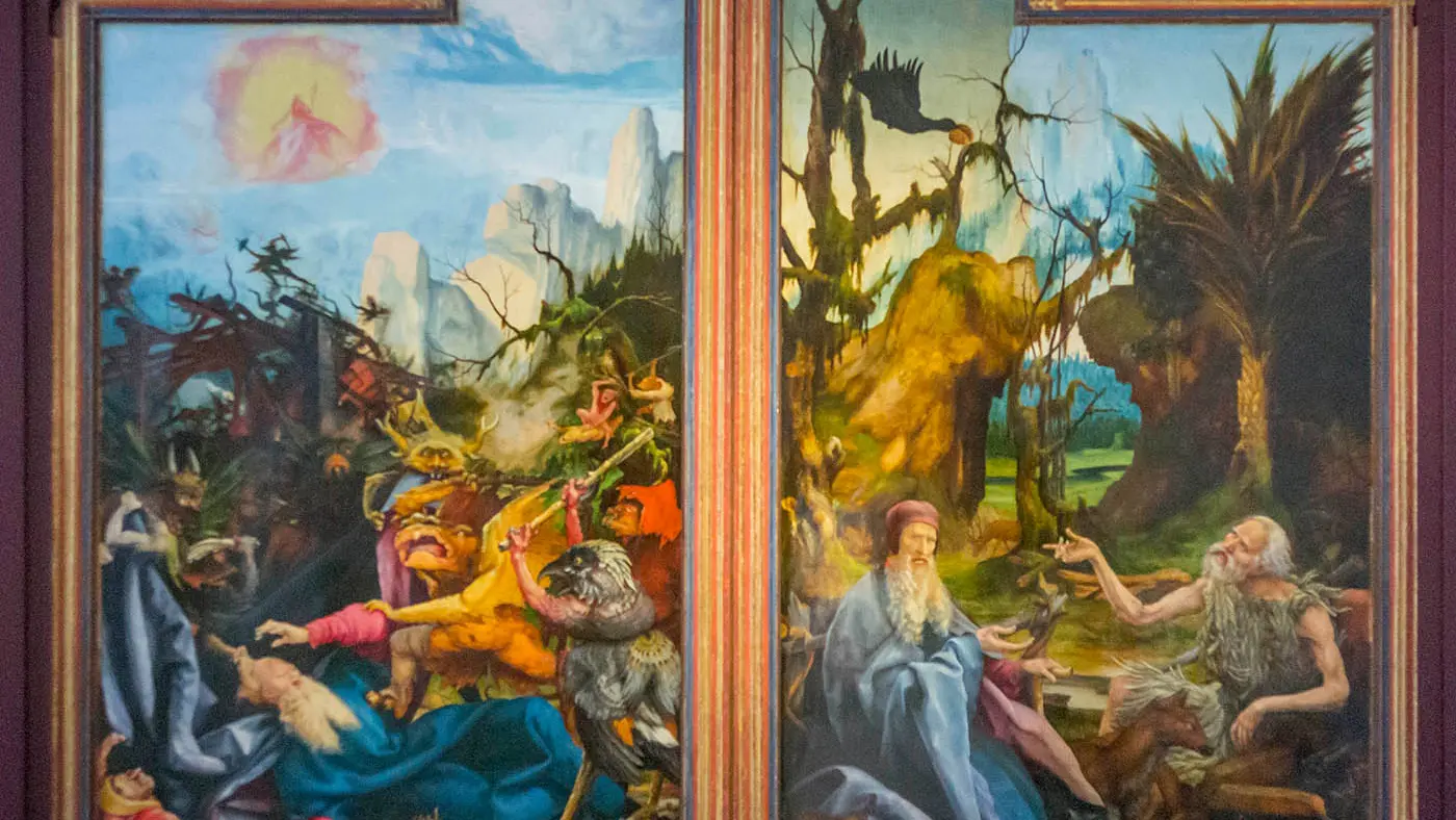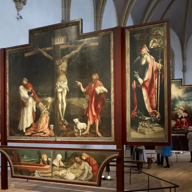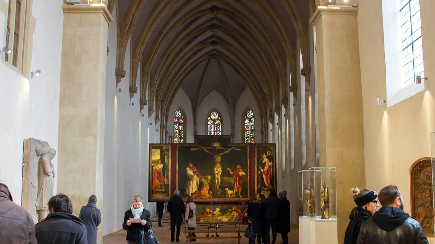 Dans le cloître médiéval est présenté l’art du Moyen-Age et de la Renaissance avec des oeuvres de Martin Schongauer, Hans Holbein, Lucas Cranach … et le chef-d’oeuvre incontournable, le Retable d’Issenheim (1512–1516).