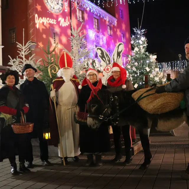 Comme chaque à Haguenau, Saint Nicolas vient rencontrer les enfants au cœur du Marché de Noël.