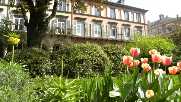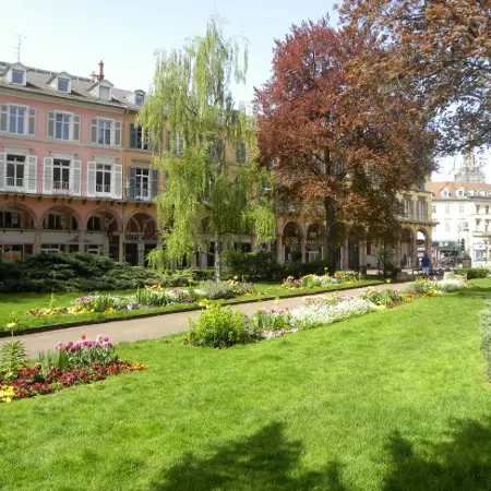 Serti entre les colonnades de la place de la Bourse, ce square de 4 677 m² offre en plein centre-ville de riches décorations florales et l'ombre d'arbres vénérables dont un Platane âgé d'environ 175 ans. De forme triangulaire, ce square est l'un des plus anciens de Mulhouse. Il fut créé lors de la construction du Nouveau Quartier en 1826. Le jardin appartenait alors aux propriétaires des immeubles bordant la place ; il se trouvait à un mètre environ au-dessous du niveau des rues et était entouré de palissades en bois. Il fut ensuite comblé et clôturé par une grille. En 1925, il fut pris en location - pour une durée de 99 ans - par la Ville qui l'aménagea et en fit un jardin public.